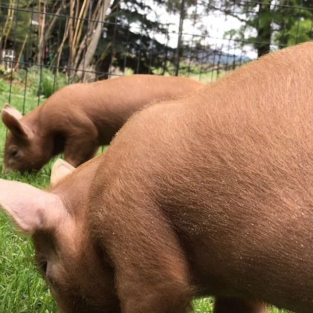 Tamworth pigs are a heritage breed with origins in Ireland. Known as "Irish grazers" or "Grizzly" pigs, they do well as foragers on pasture and in woodlands [1].